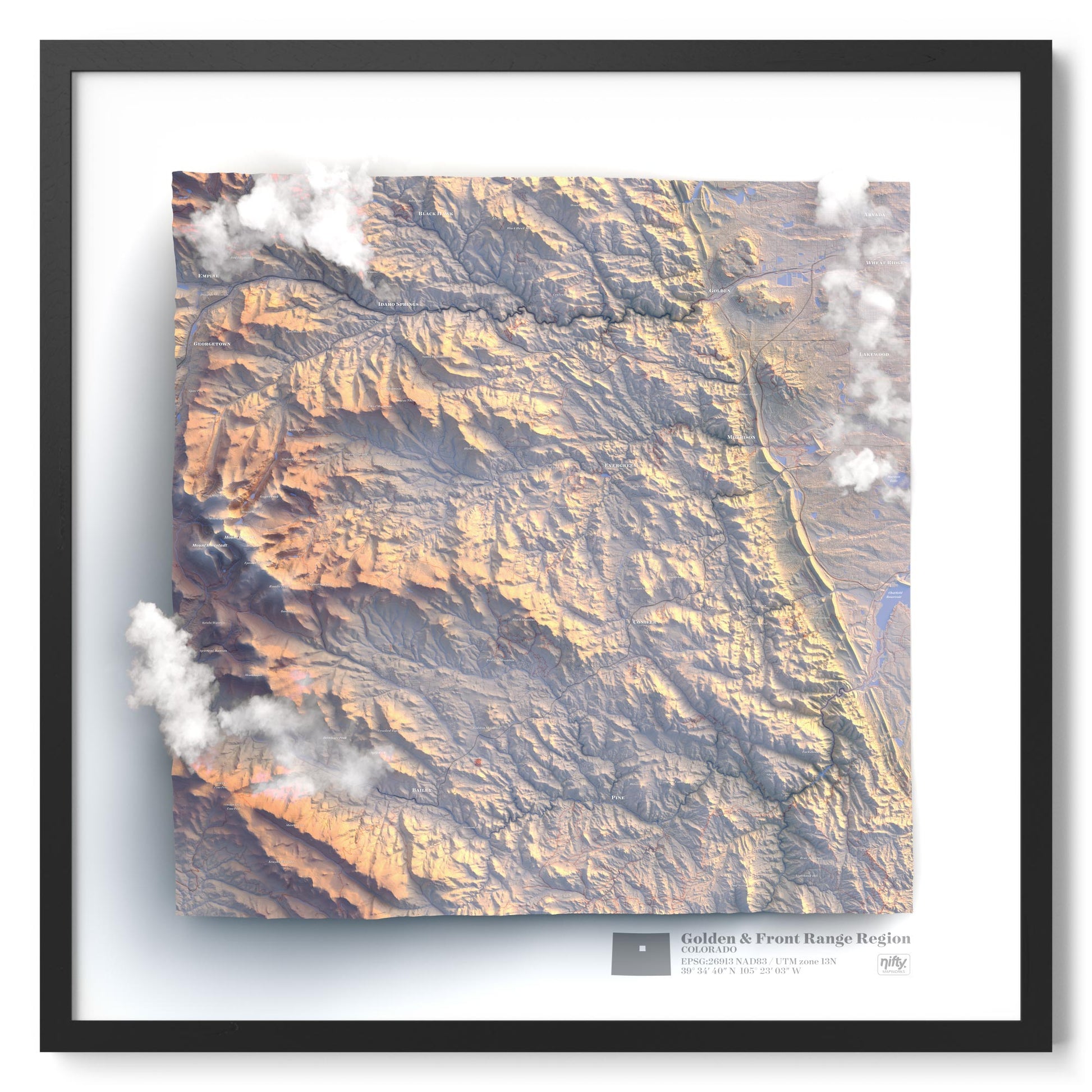 Immerse yourself in the breathtaking natural beauty of Golden, Denver's Front Range, and the surrounding areas with our meticulously crafted art map print, capturing the essence of this enchanting Colorado region with a perfect blend of artistry and cartography.