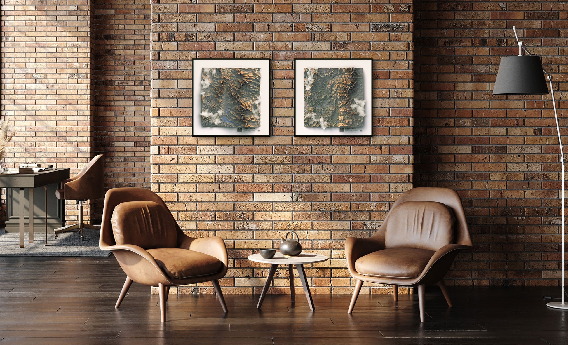➡ Though these maps depict 3D terrain, they are 2D prints and flat to the touch—engineered to create an optical illusion of depth and topography.
