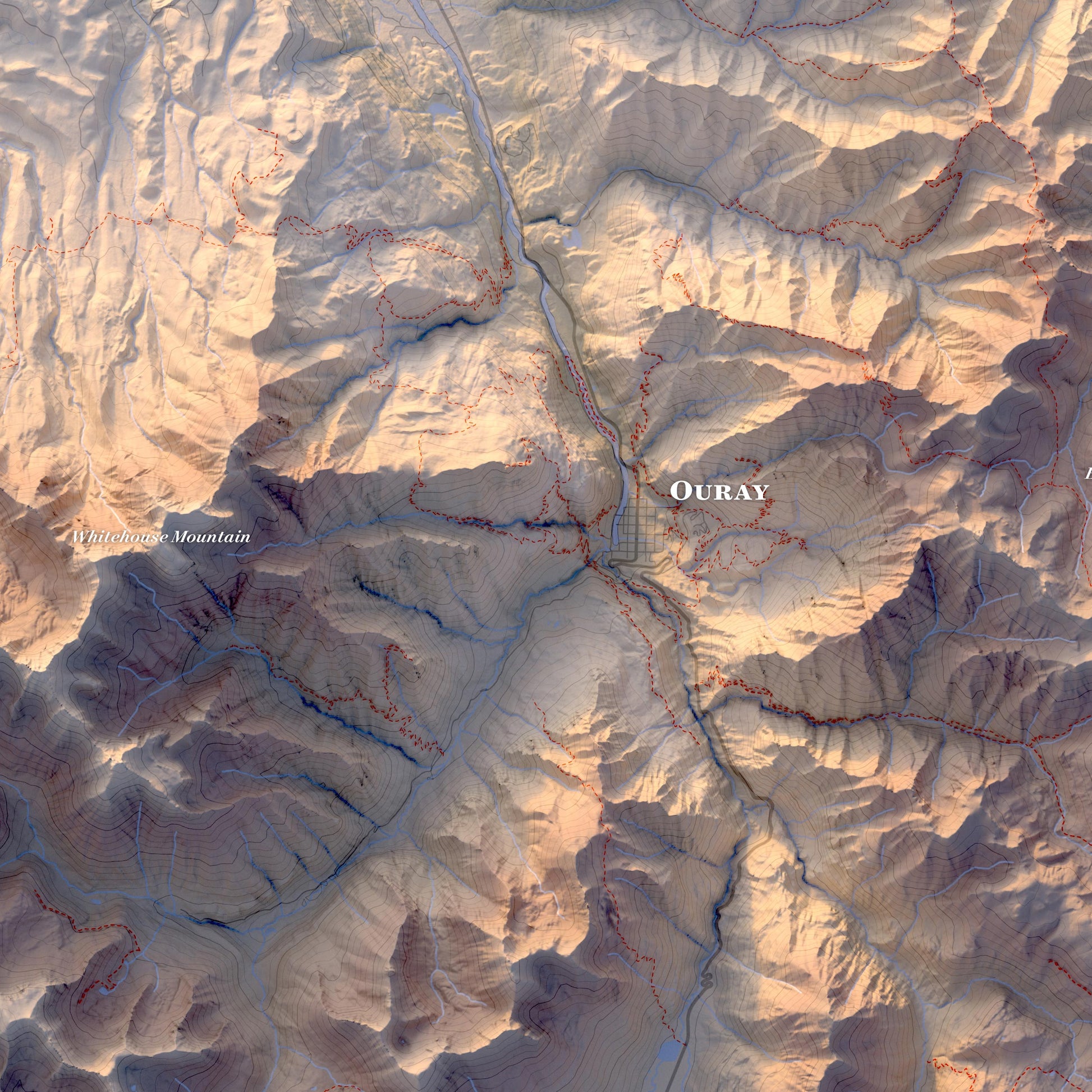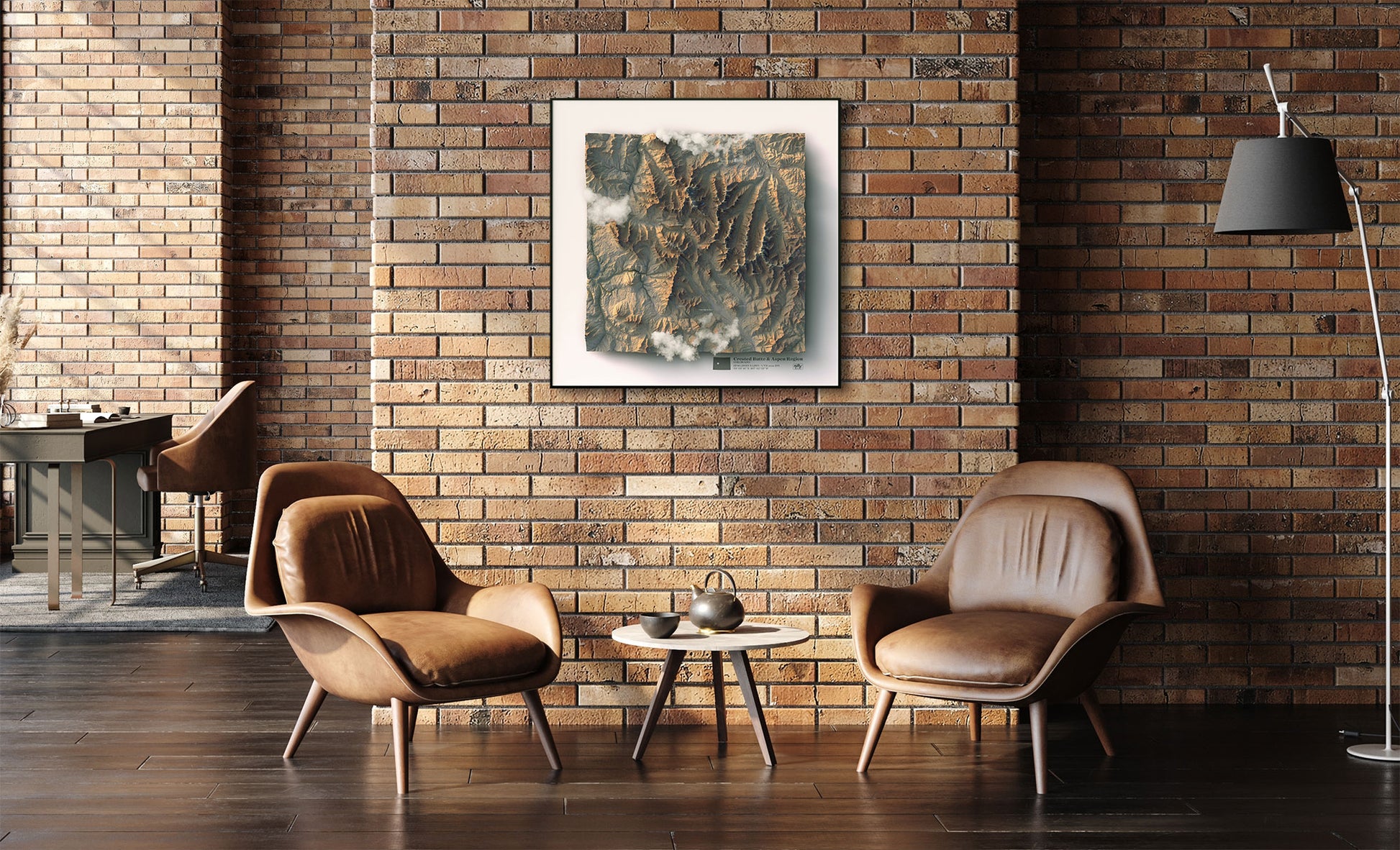 ➡ Custom-designed cartographic style, created using high-resolution satellite elevation data courtesy of USGS, resulting in highly detailed and visually striking maps.