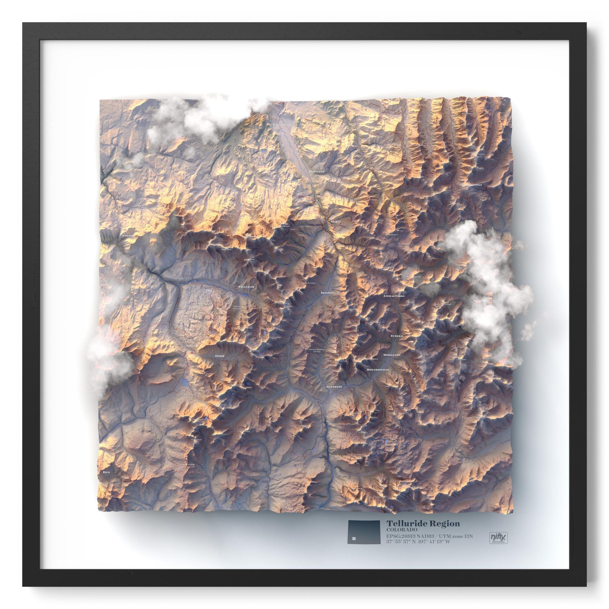 Immerse yourself in the breathtaking natural beauty of Telluride and the surrounding areas with our meticulously crafted art map print, capturing the essence of this enchanting Colorado region with a perfect blend of artistry and cartography.